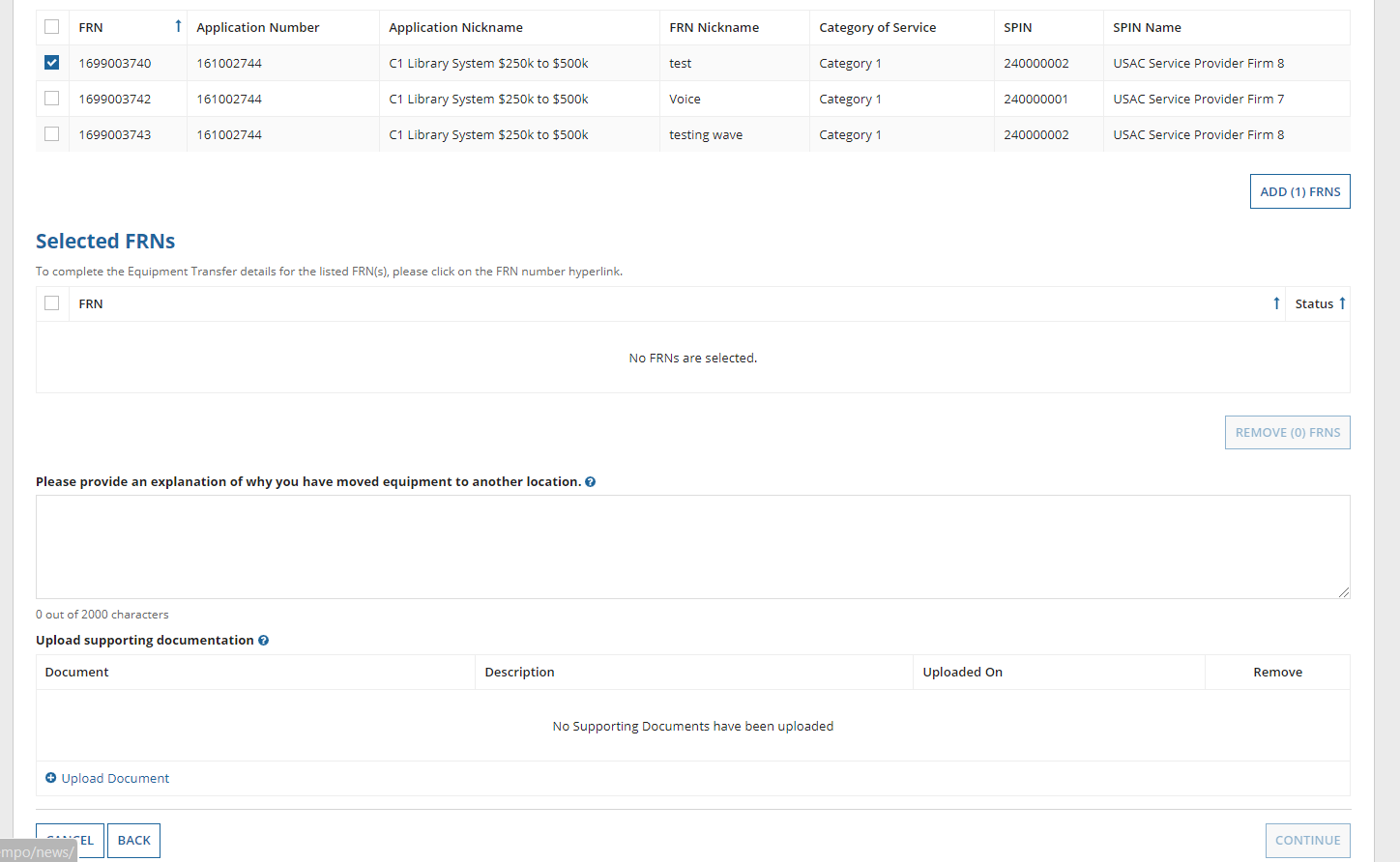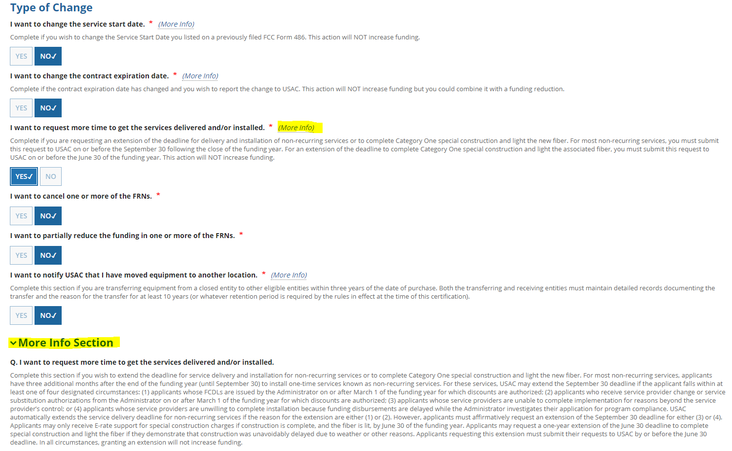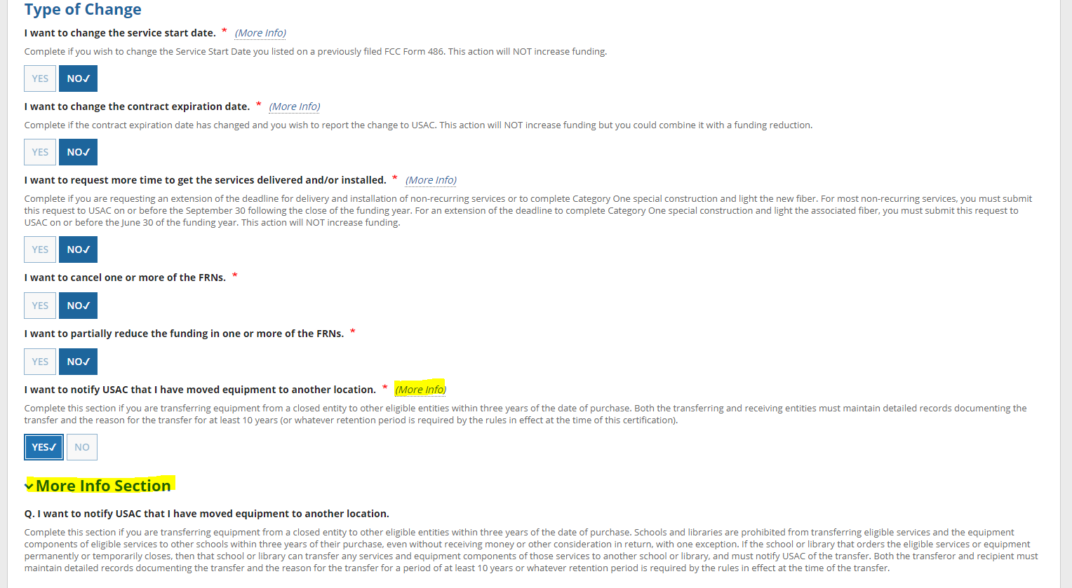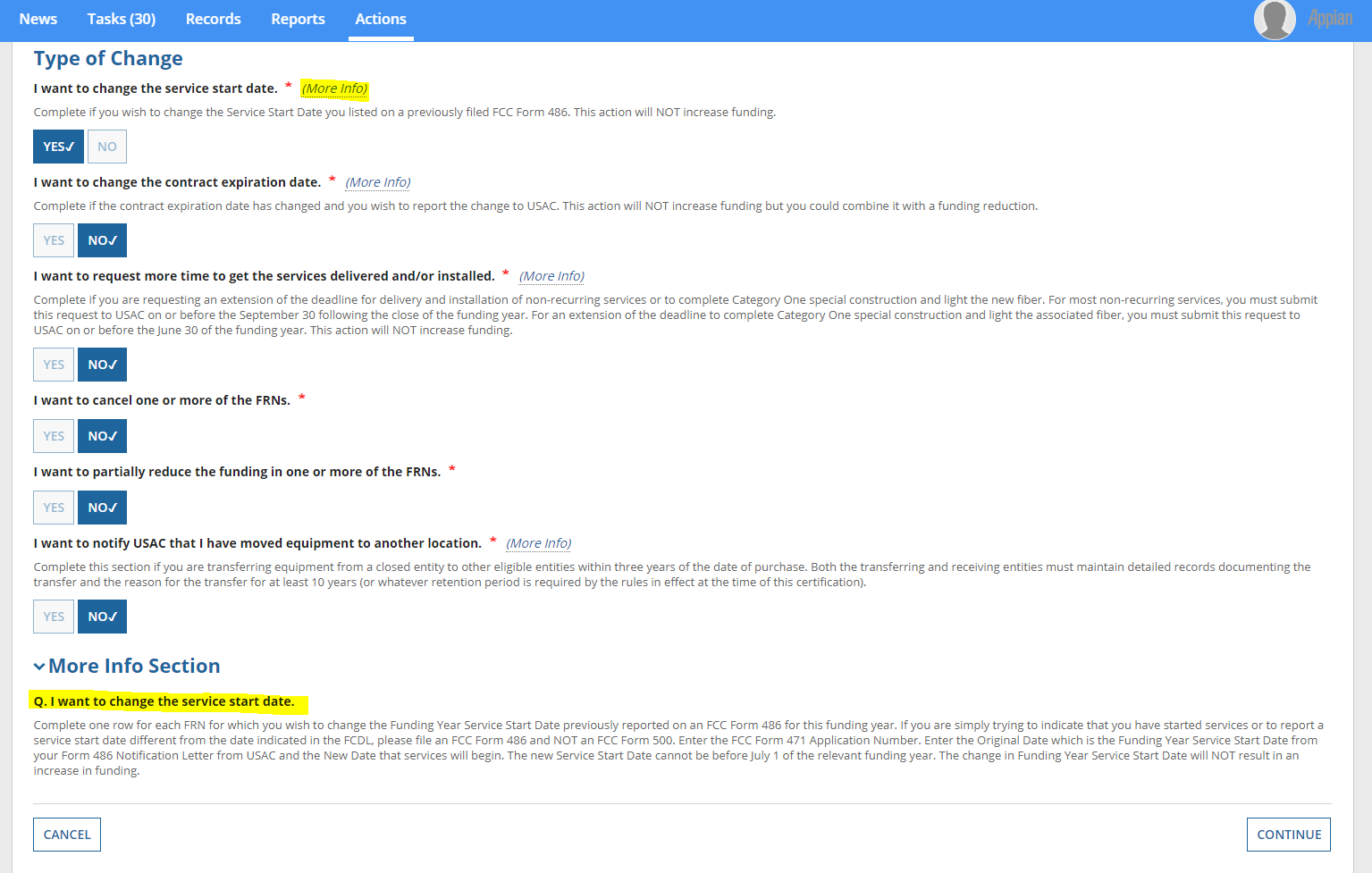will be using the FCC Form 500 (e.g., by selecting changing service