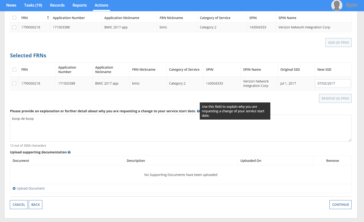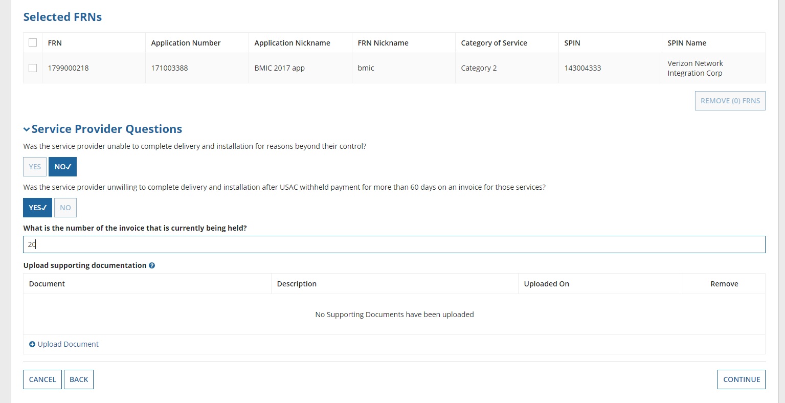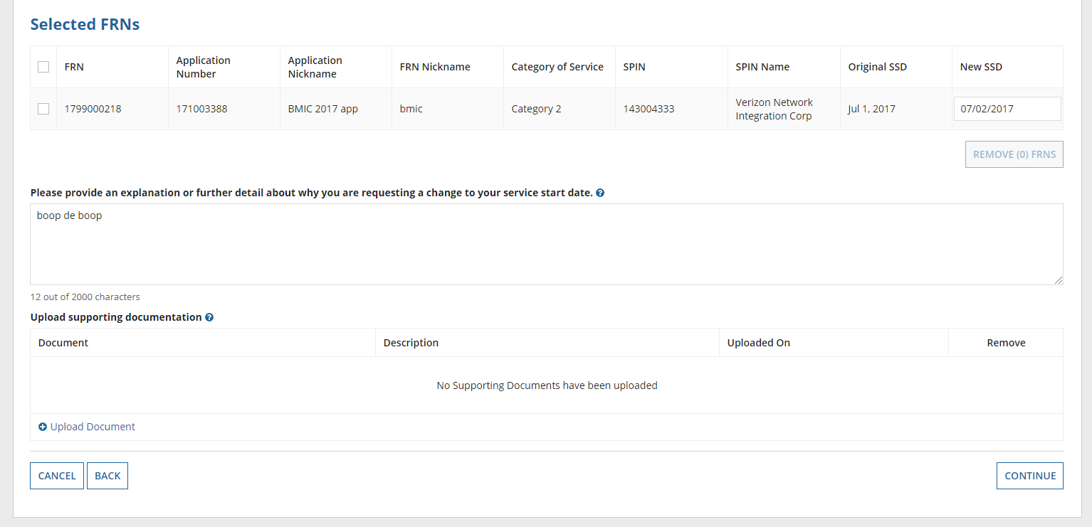will be using the FCC Form 500 (e.g., by selecting changing service