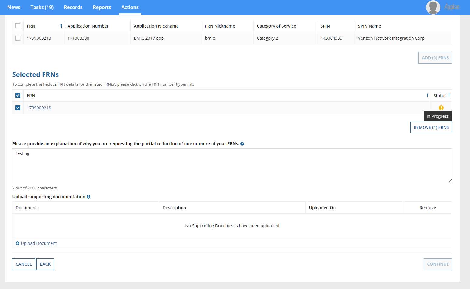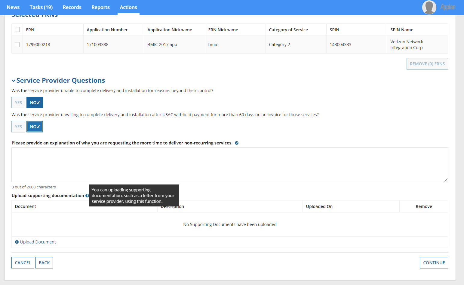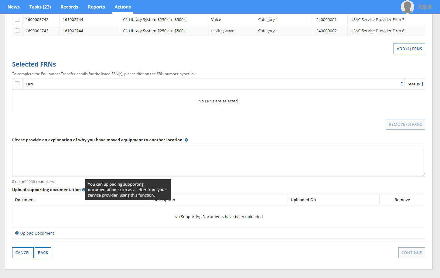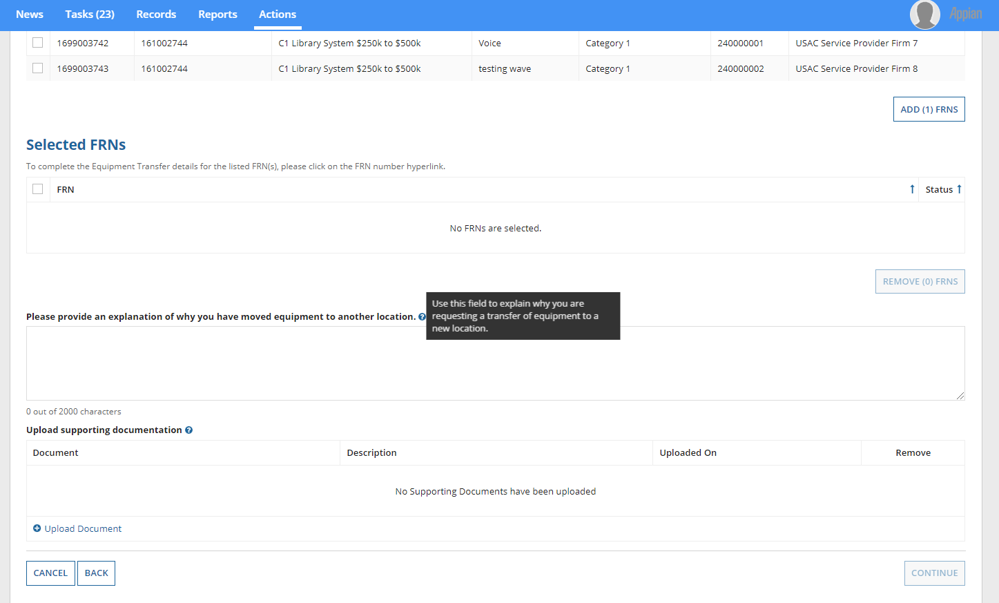 will be using the FCC Form 500 (e.g., by selecting changing service