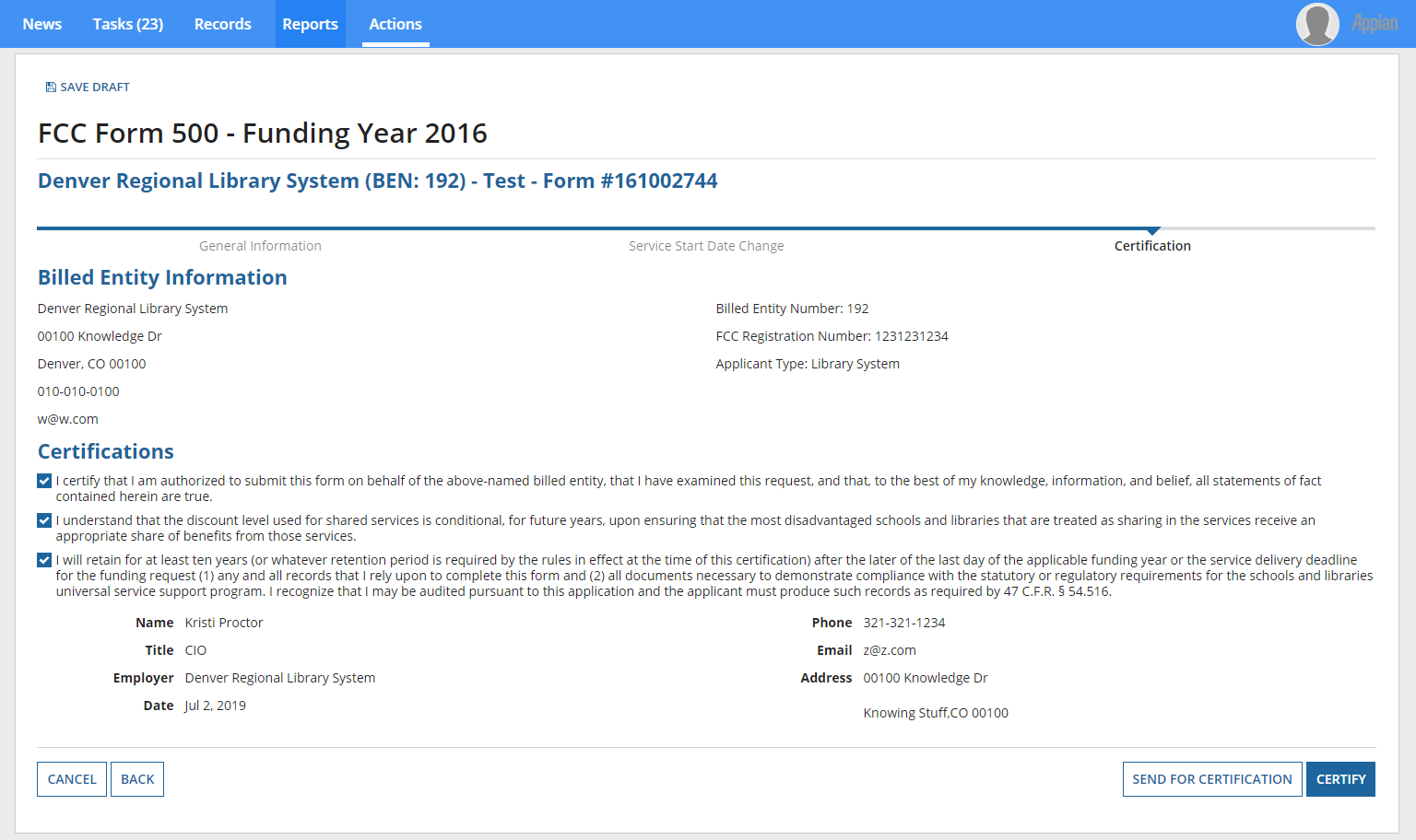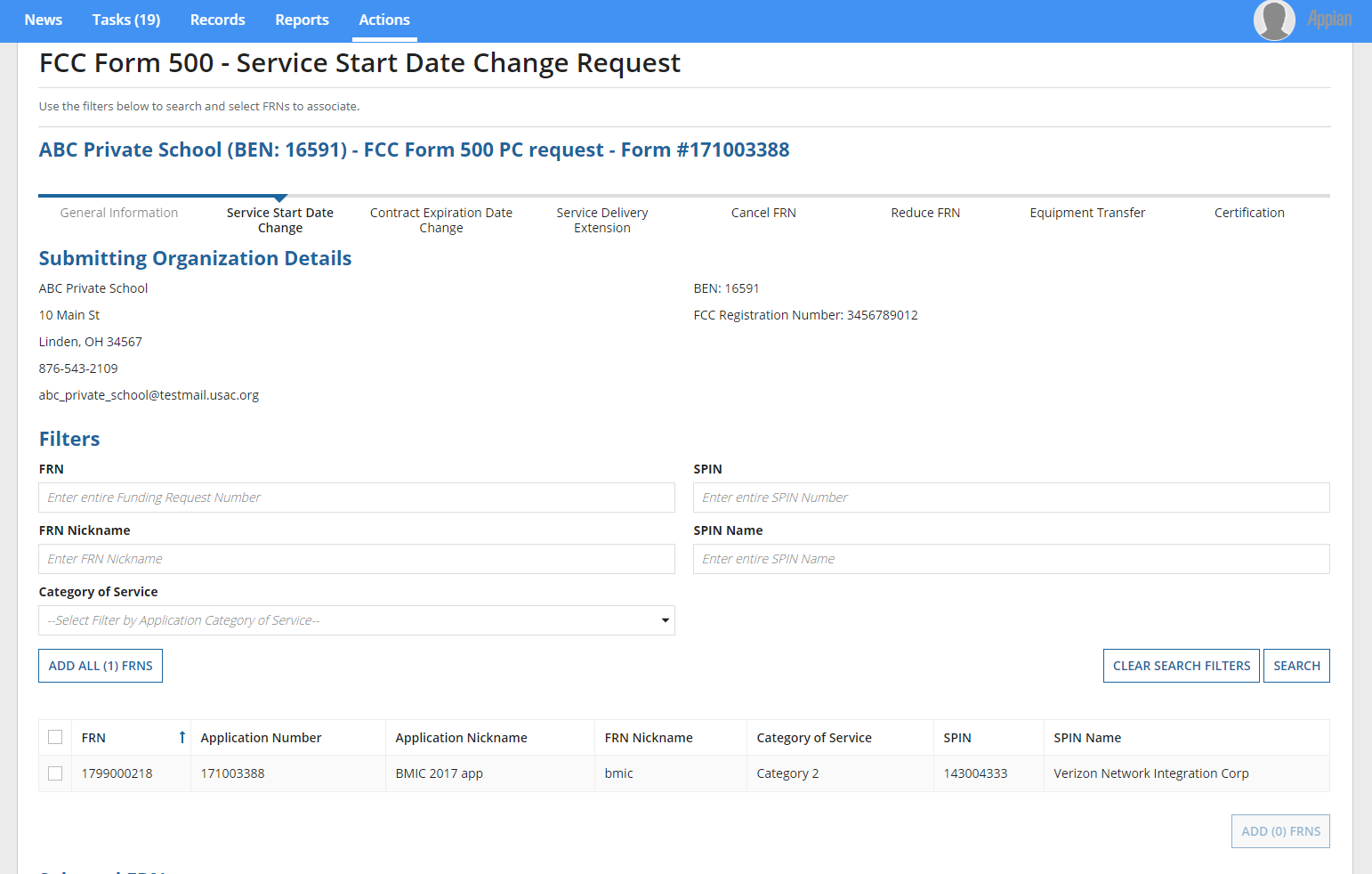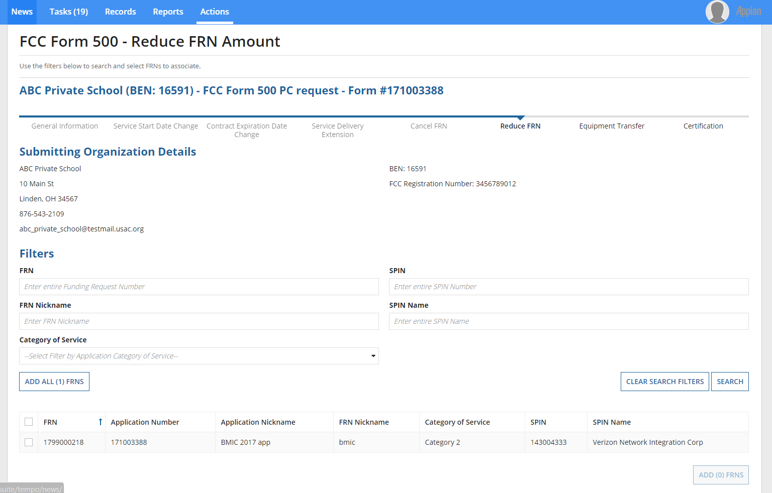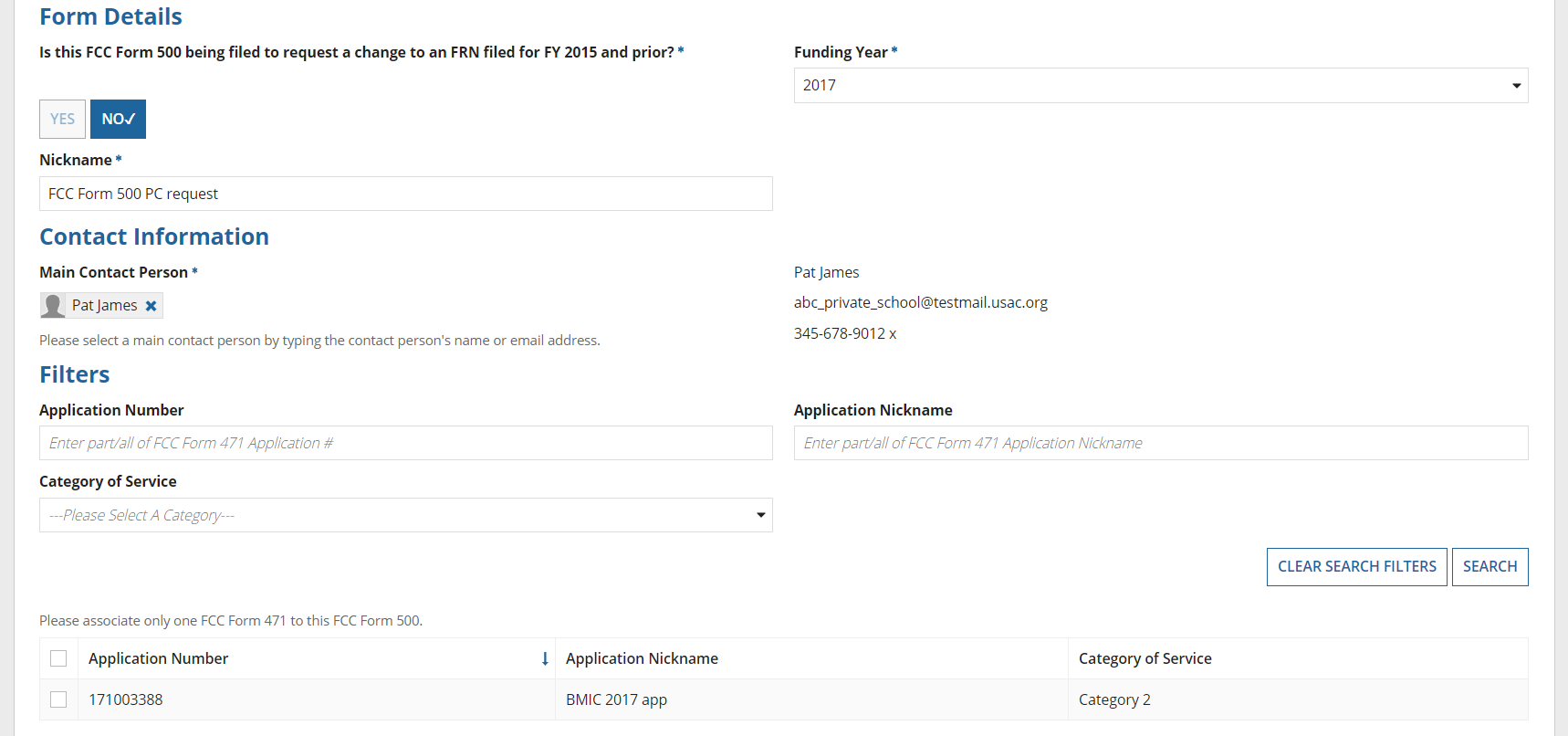 The below screenshots demonstrate how an FCC Form 500 may be filed within the E-Rate Productivity Center (EPC).