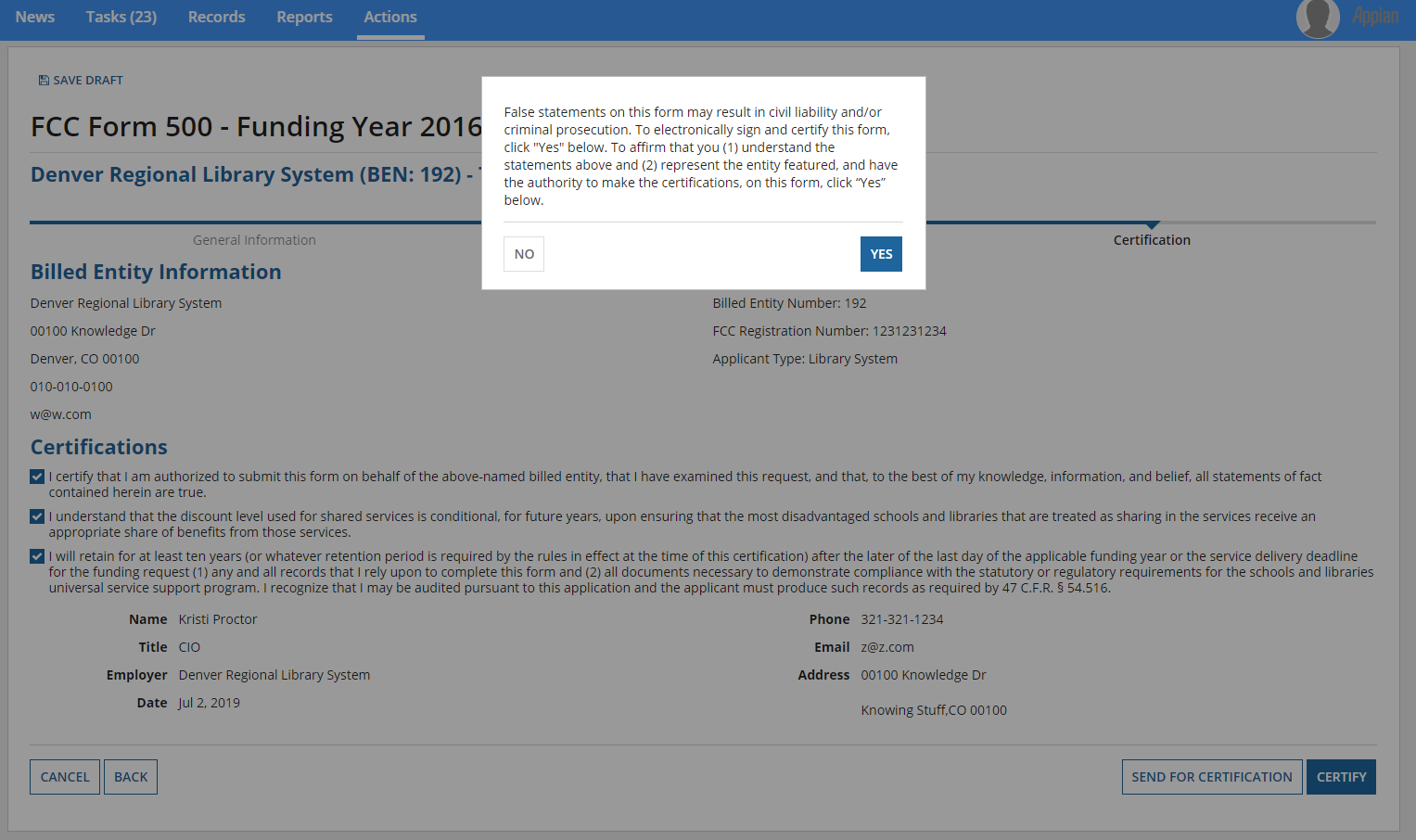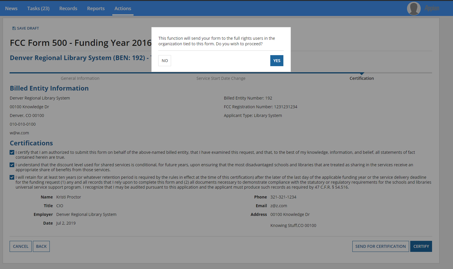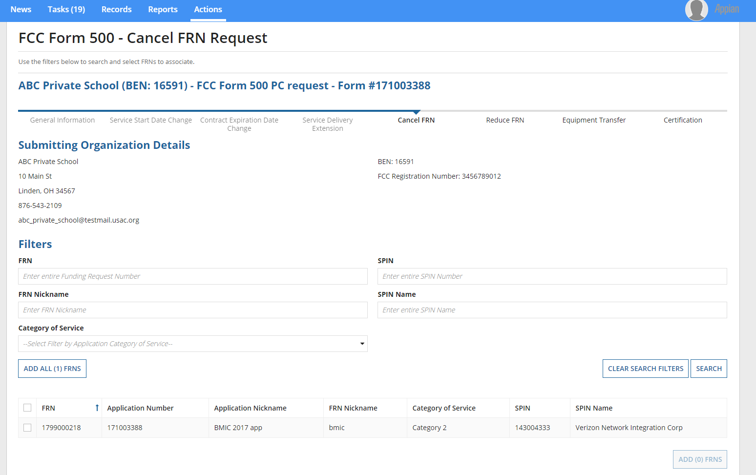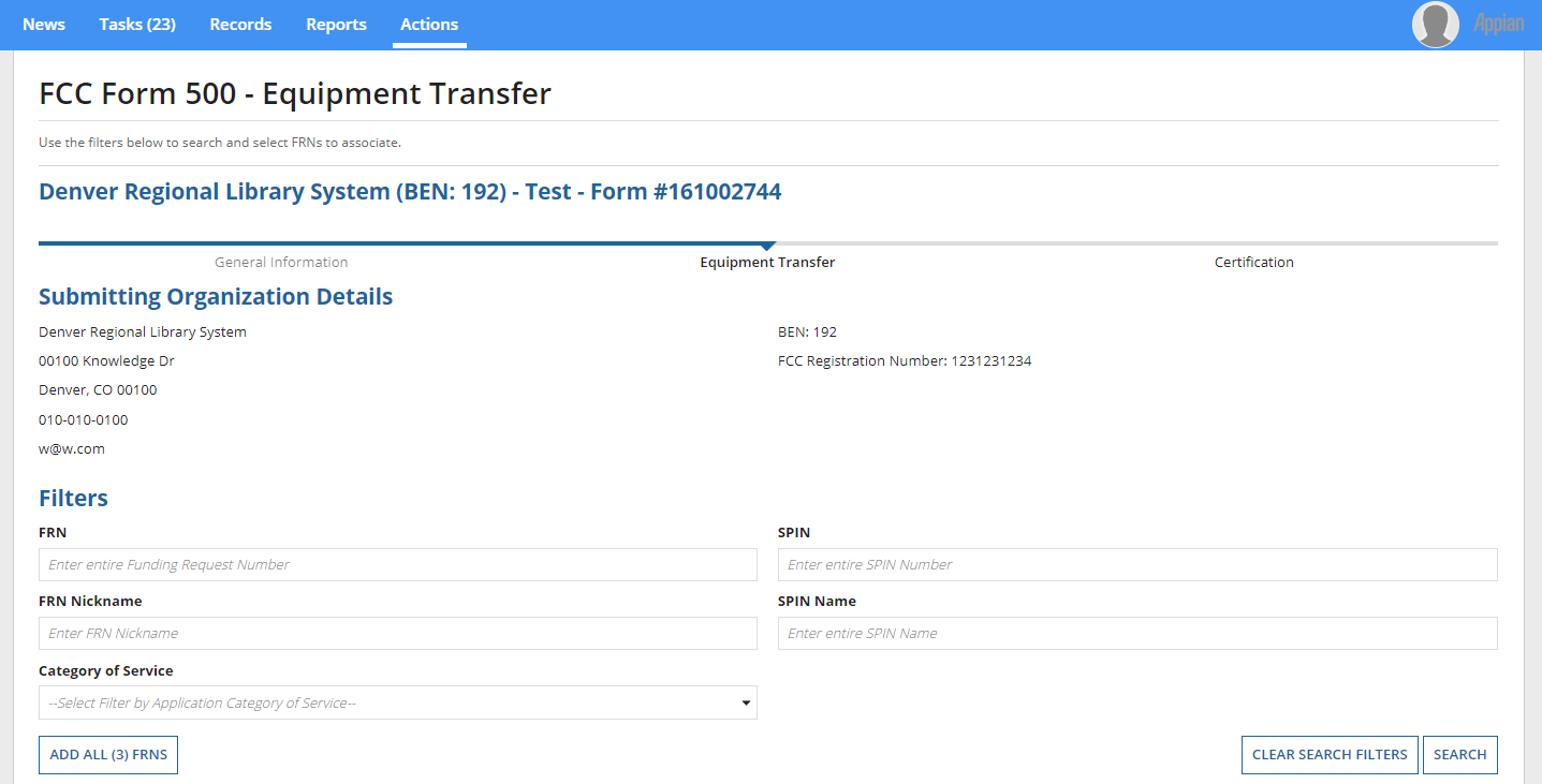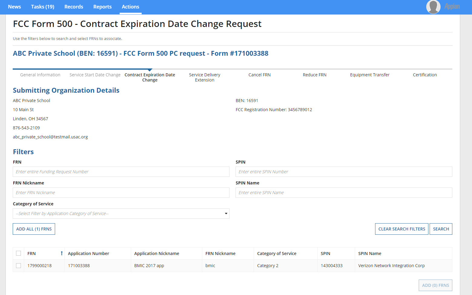 The below screenshots demonstrate how an FCC Form 500 may be filed within the E-Rate Productivity Center (EPC).