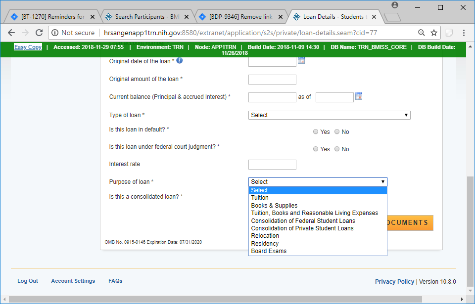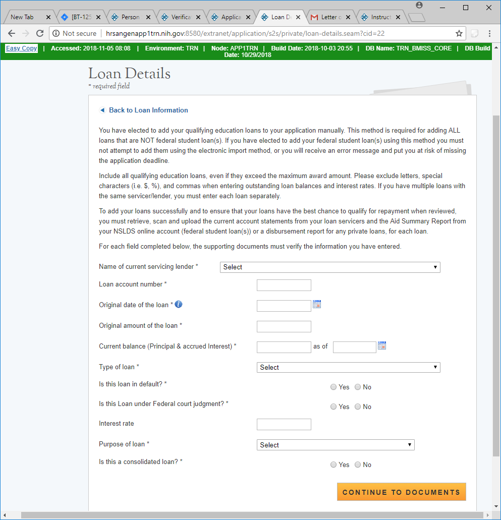 If the loan is a consolidated loan then instructions for required documentation is displayed and a drop down for the number of loans that were consolidated.
