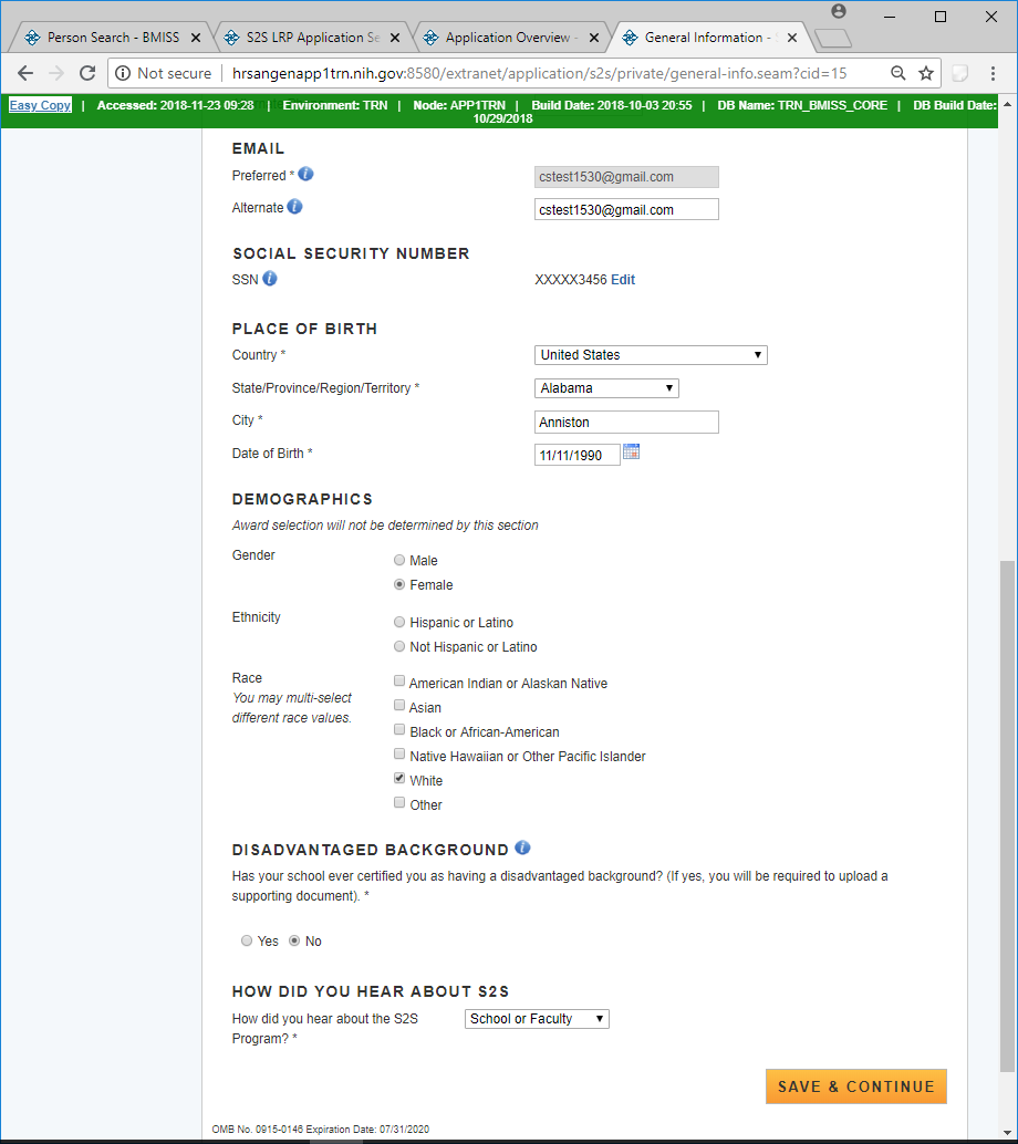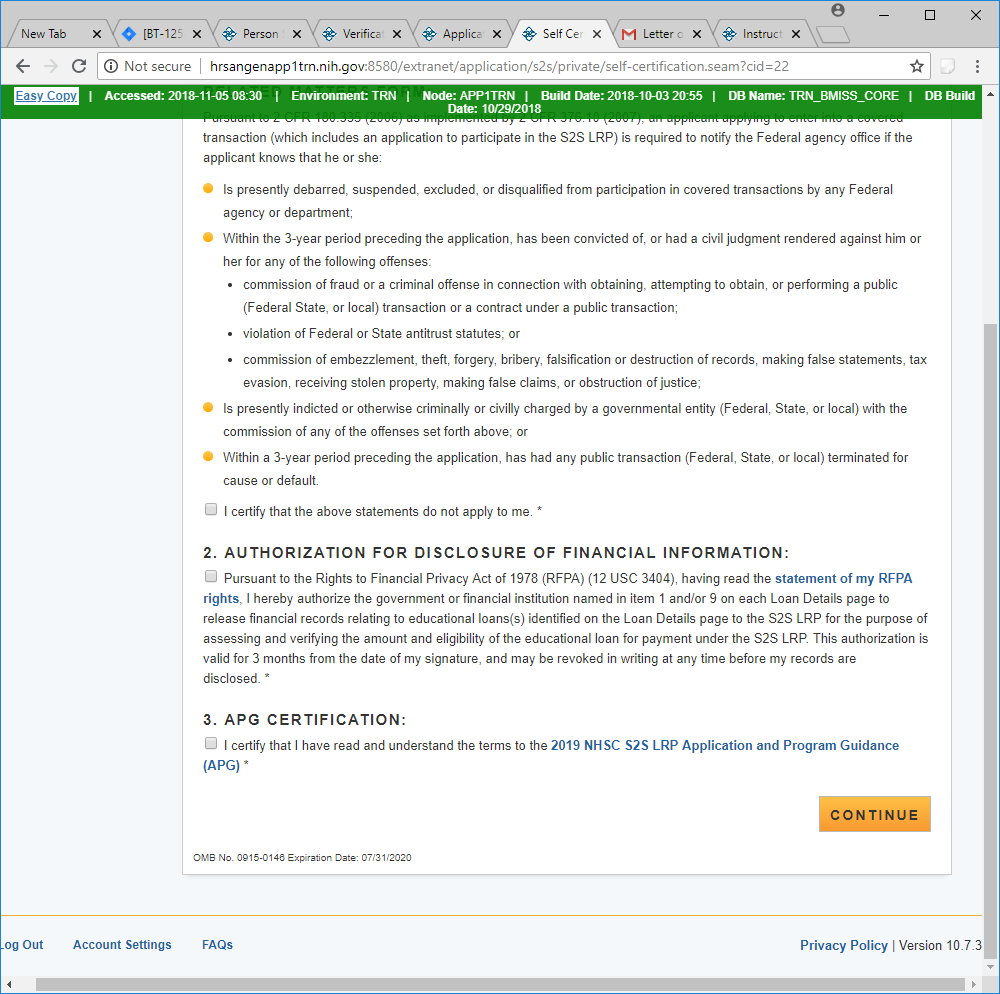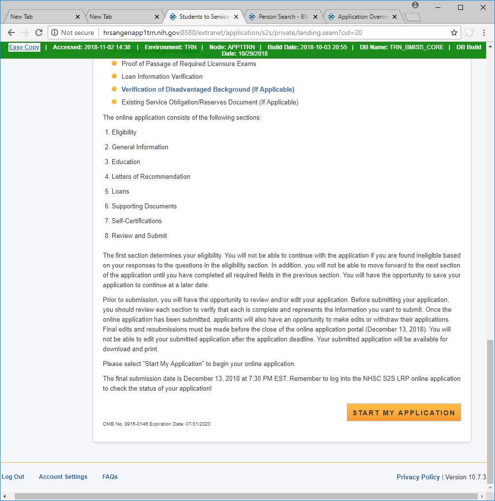 Public Burden Statement: The purpose of this information collection is to obtain information through the National Health Service Corps Students to Service Loan Repayment Program (NHSC S2S LRP) that is used to assess a loan repayment applicant’s eligibility and qualifications. Clinicians interested in participating in the NHSC S2S LRP must submit an application to the NHSC S2S LRP through the My BHW online portal. An agency may not conduct or sponsor, and a person is not required to respond to, a collection of information unless it displays a currently valid OMB control number. The OMB control number for this information collection is 0915-0146 and it is valid until xx/xx/xxxx. This information collection is required to obtain or retain a benefit [Section 338B of the Public Health Service Act (42 USC 254l-1), as amended; Section 331(i) of the Public Health Service Act (42 USC 254d(i)), as amended)]. The information is protected by the Privacy Act, but it may be disclosed outside the U.S. Department of Health and Human Services, as permitted by the Privacy Act and Freedom of Information Act, to Congress, the National Archives, and the Government Accountability Office, and pursuant to court order and various routine uses as described in the System of Record Notice 09-15-0037. Public reporting burden for this collection of information is estimated to average xx hours per response, including the time for reviewing instructions, searching existing data sources, and completing and reviewing the collection of information. Send comments regarding this burden estimate or any other aspect of this collection of information, including suggestions for reducing this burden, to HRSA Reports Clearance Officer, 5600 Fishers Lane, Room 14NWH04, Rockville, Maryland, 20857.
