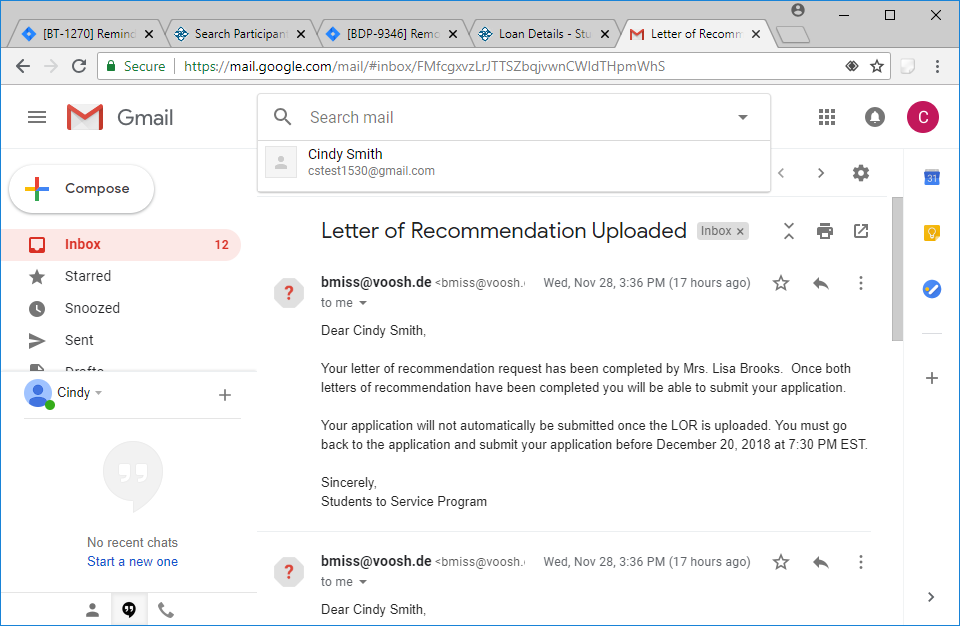 Emails to Recommenders – Contains direct links to BMISS for uploading Letters of Recommendation
