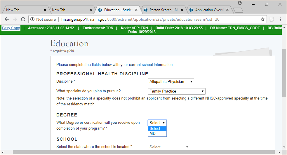 application for the National Health Service Corps (NHSC) Students to