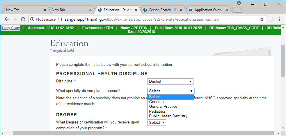 Drop Down selections for Dental Discipline
