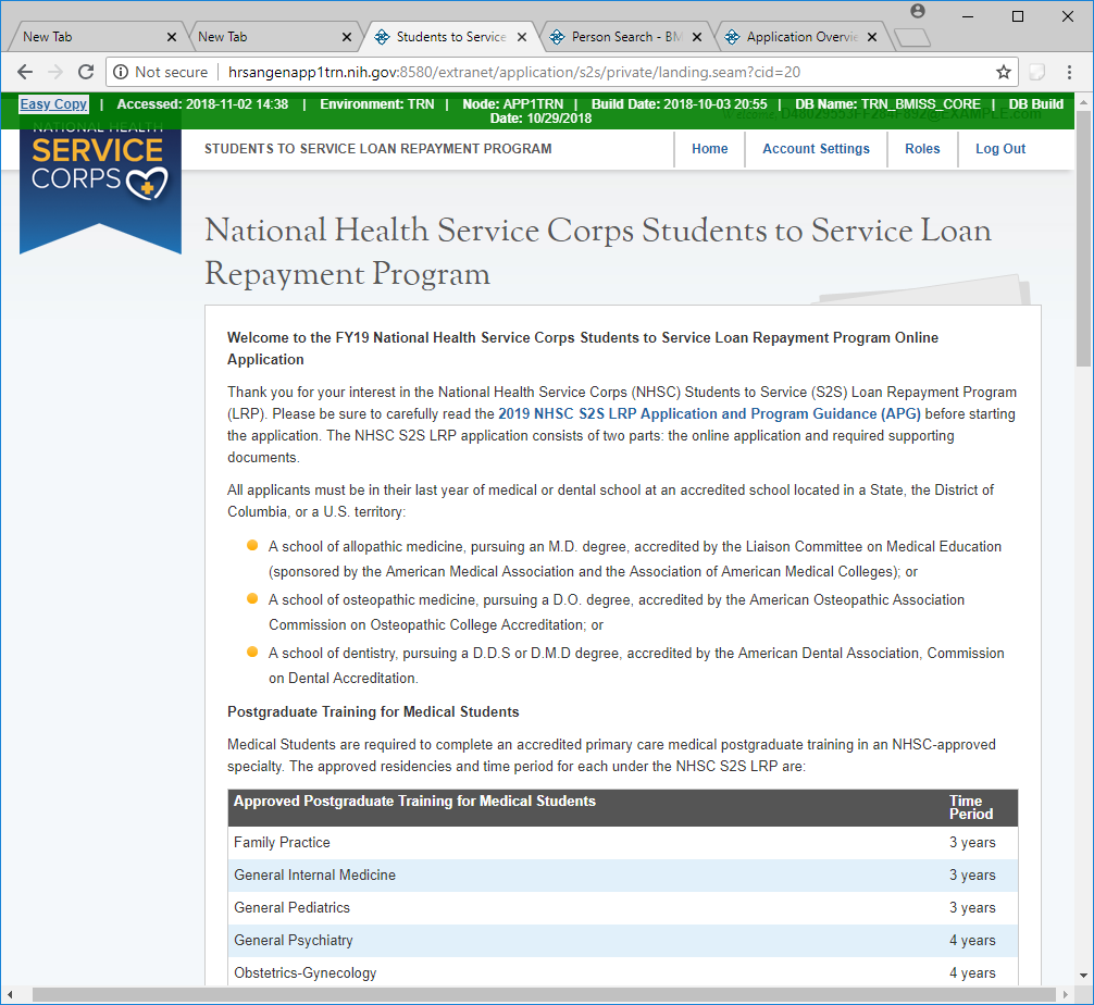Corps (NHSC) Students to Service (S2S) Loan Repayment Program