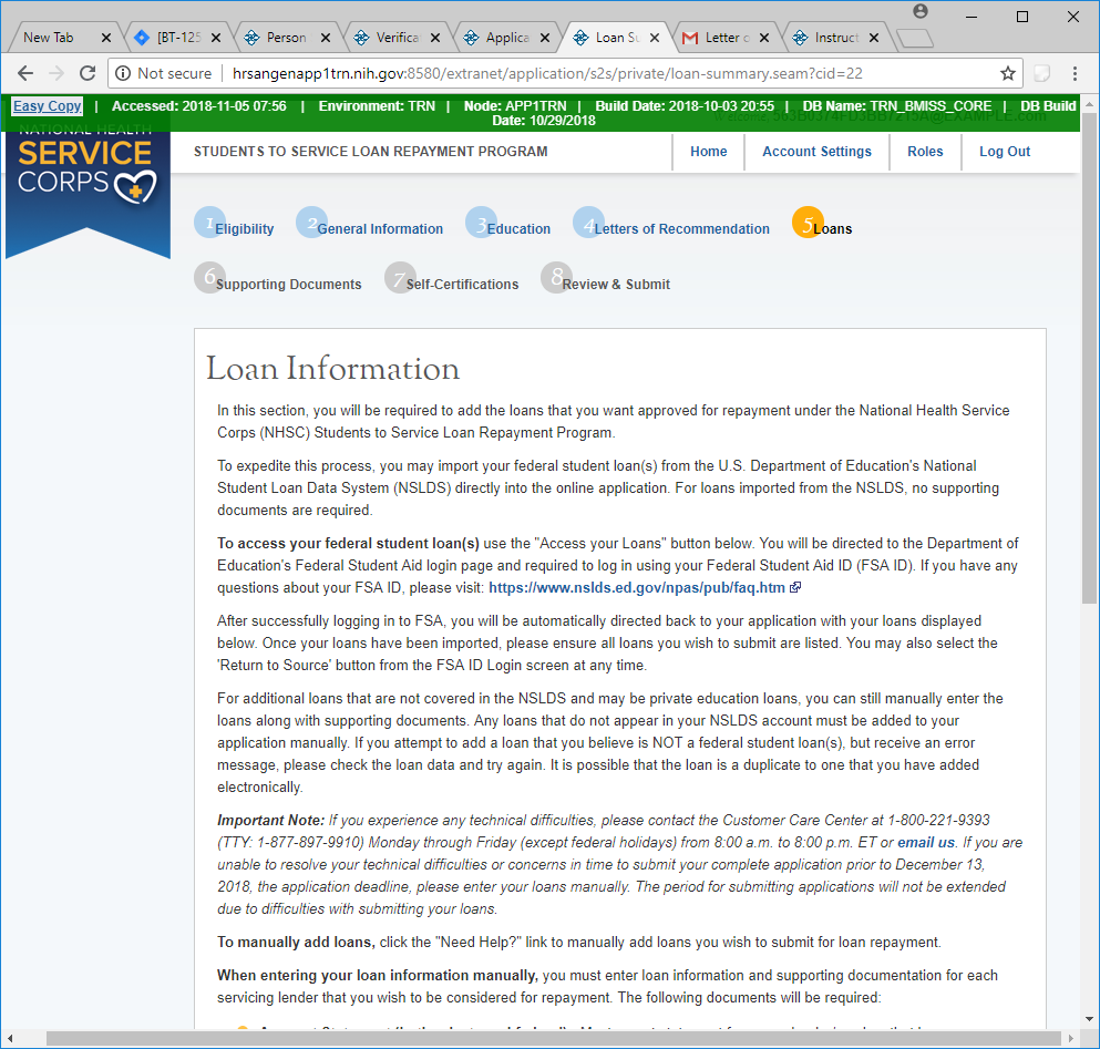 his/her loan repayment application for the National Health Service