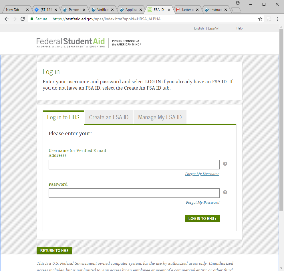 Federal Student Aid Screen when you select “Access your Loans”