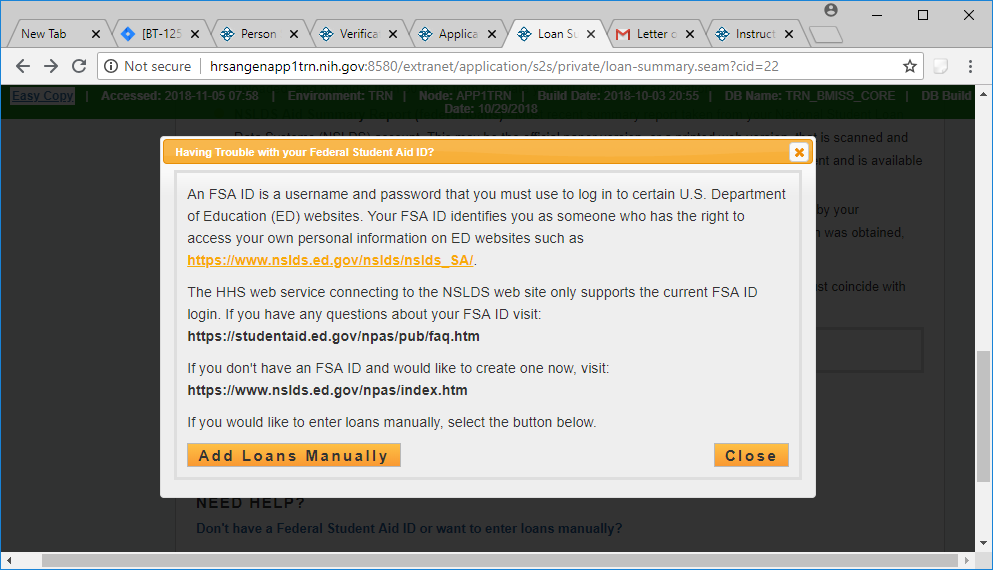 Screen when you select “Don't have a Federal Student Aid ID or want to enter loans manually?”