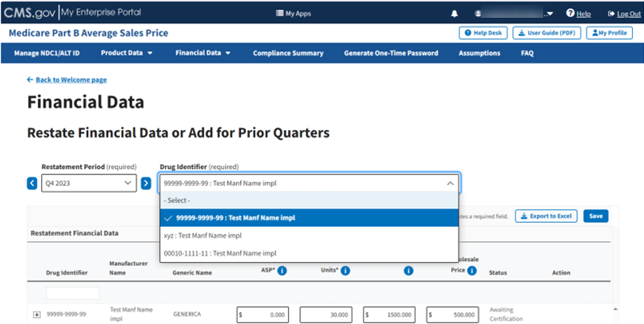 Figure 74: Add/Update Restate Financial Data - Drug Identifier Drop-down 53