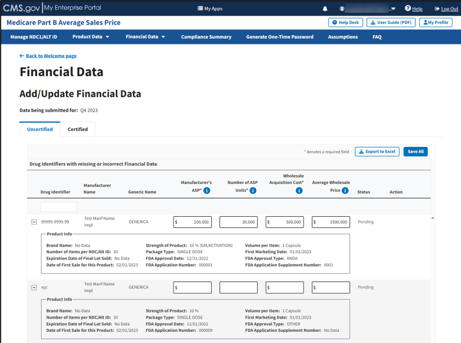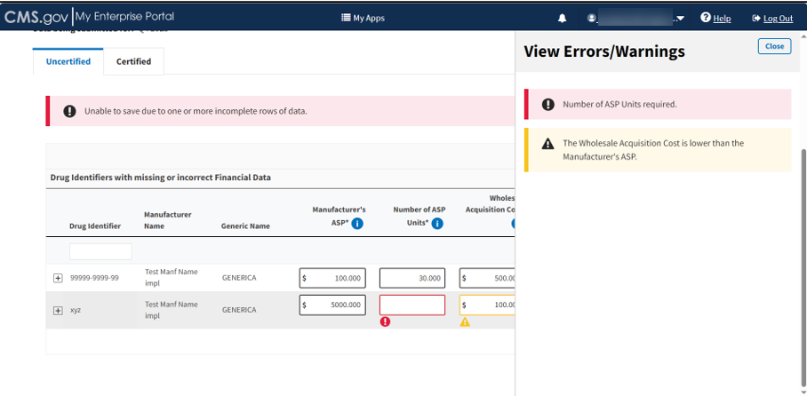 Figure 59: Add/Update Financial Data - Drug Identifiers With Missing or Incorrect Data 43