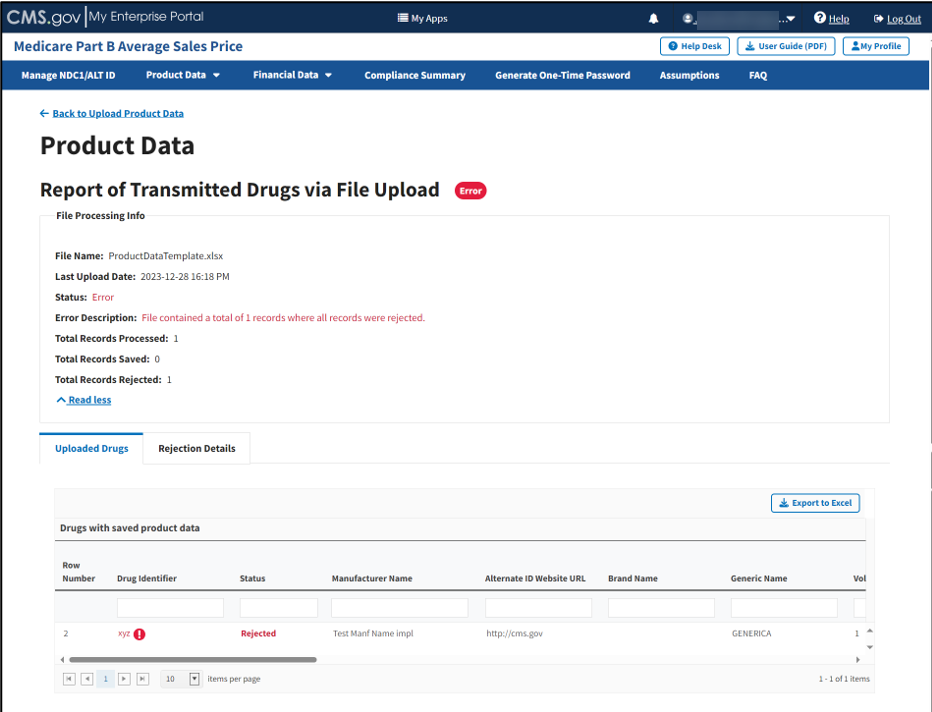 Figure 49: Upload Product Data - Reported Rejection Details 36