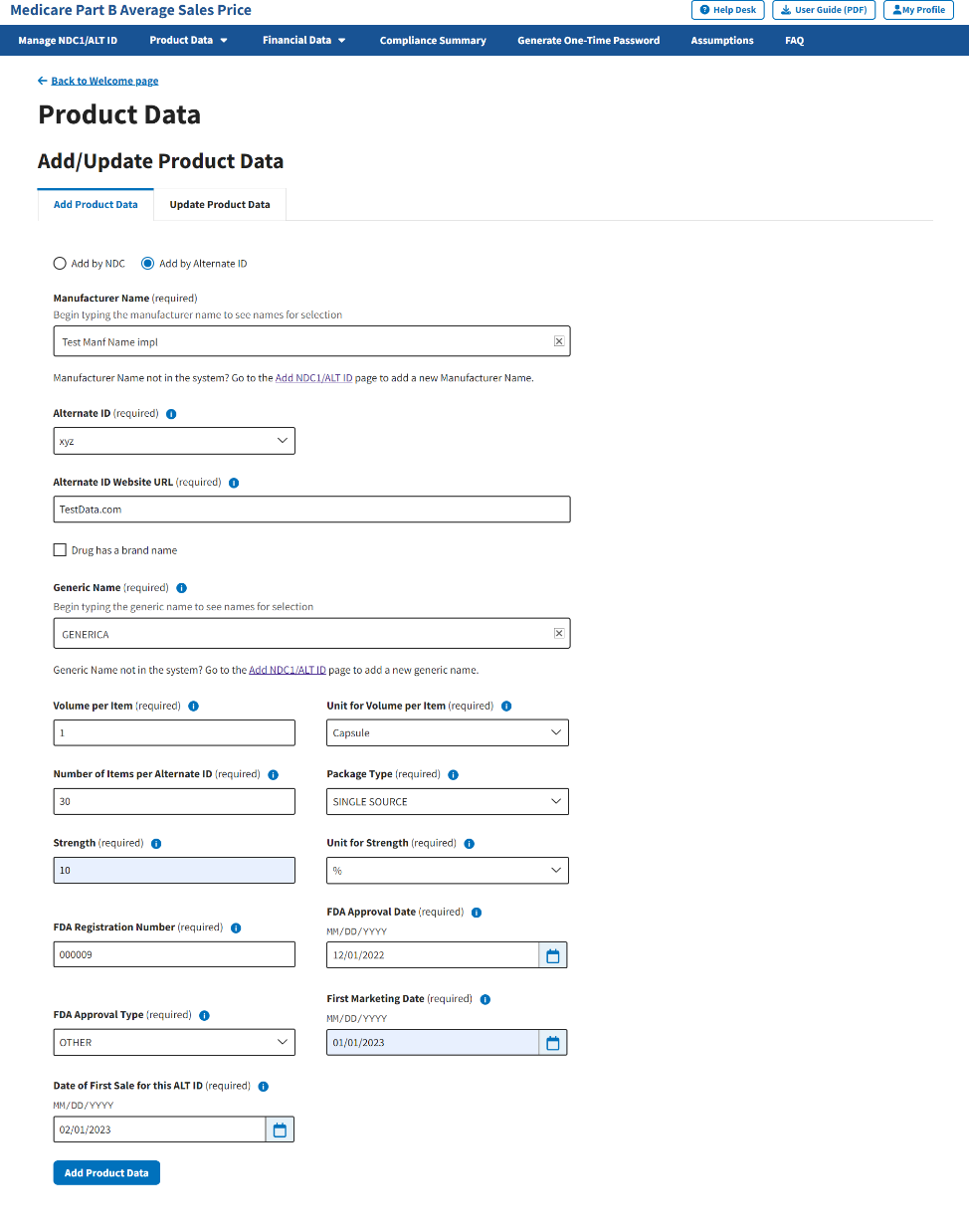 Figure 35: Add Product Data by Alternate ID - Fields Populated 25