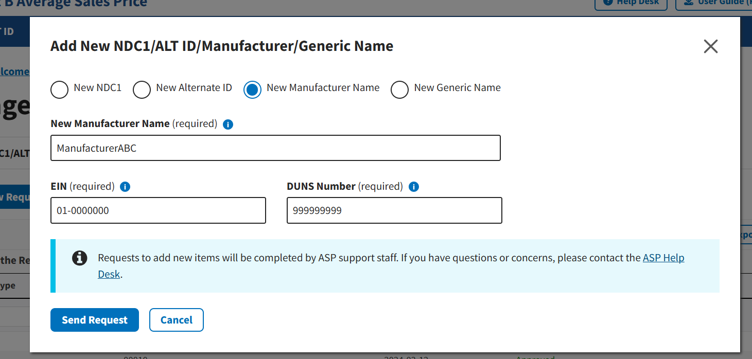 Figure 26: Request New Manufacturer Name - Field Populated 18
