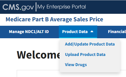 From the Medicare Part B Average Sales Price homepage, click the Manage NDC1/ALT ID tab.