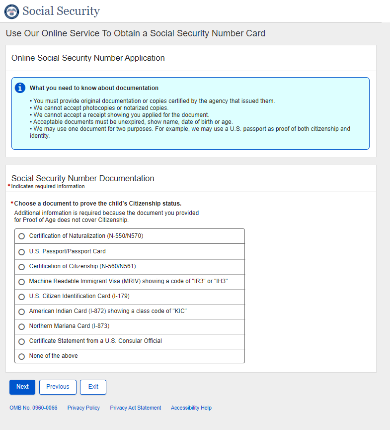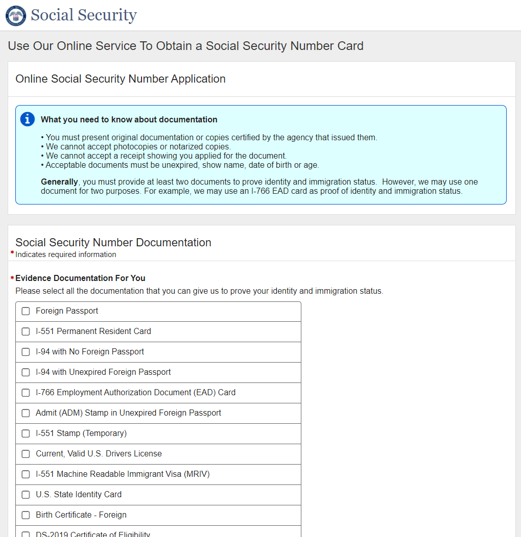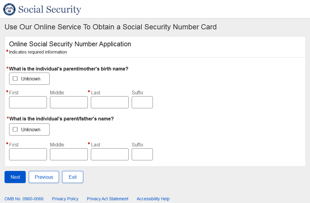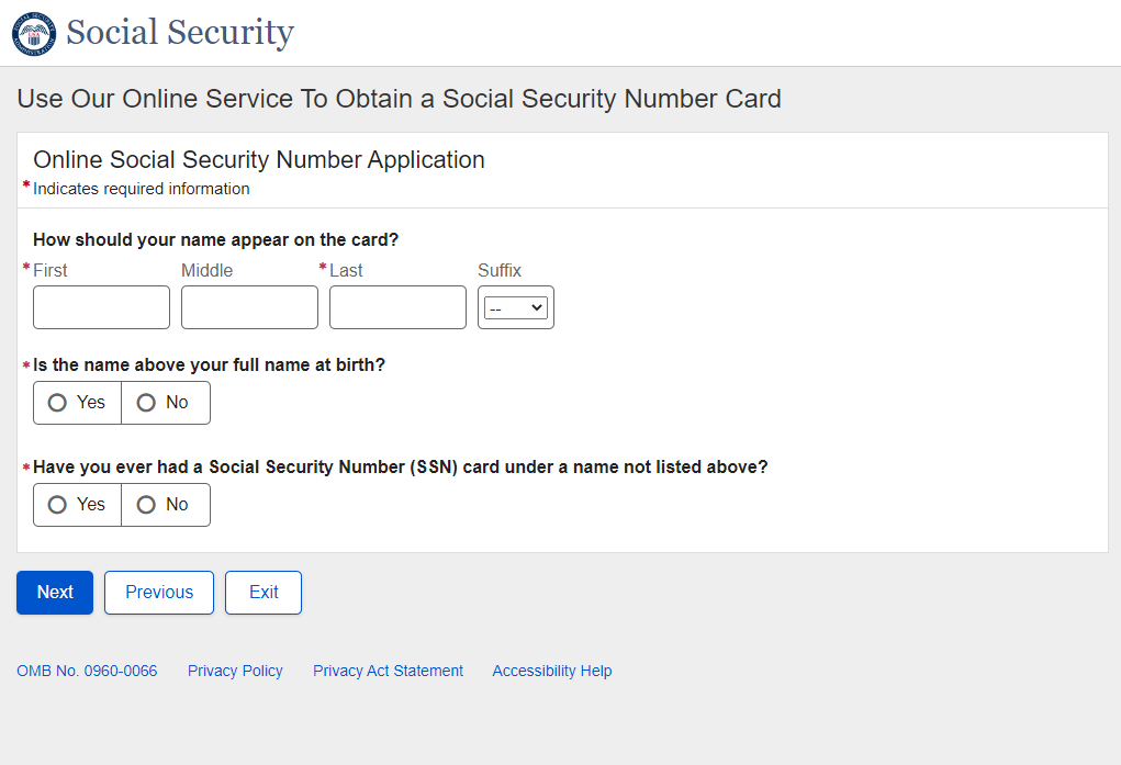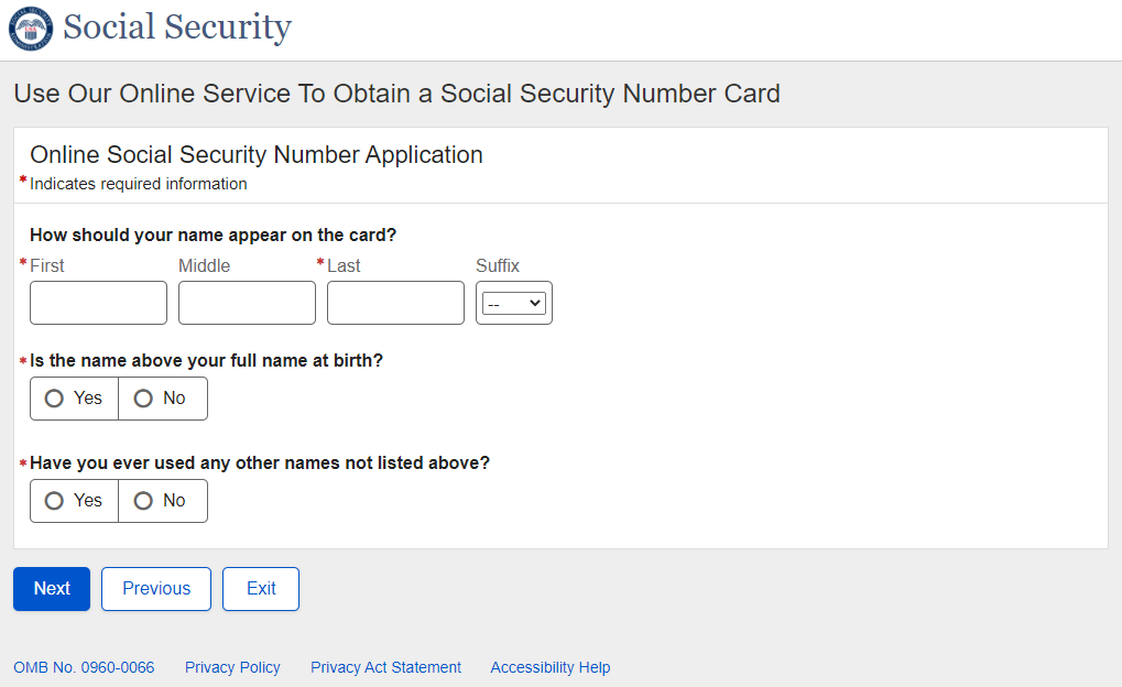 Application for a Social Security Card
