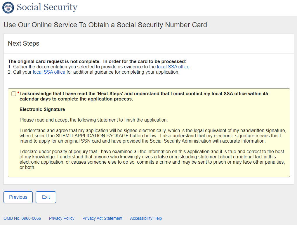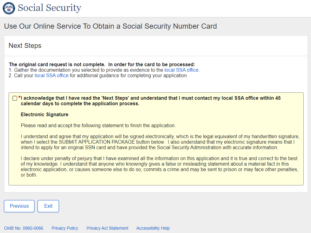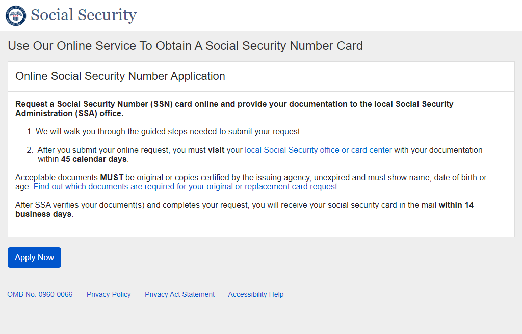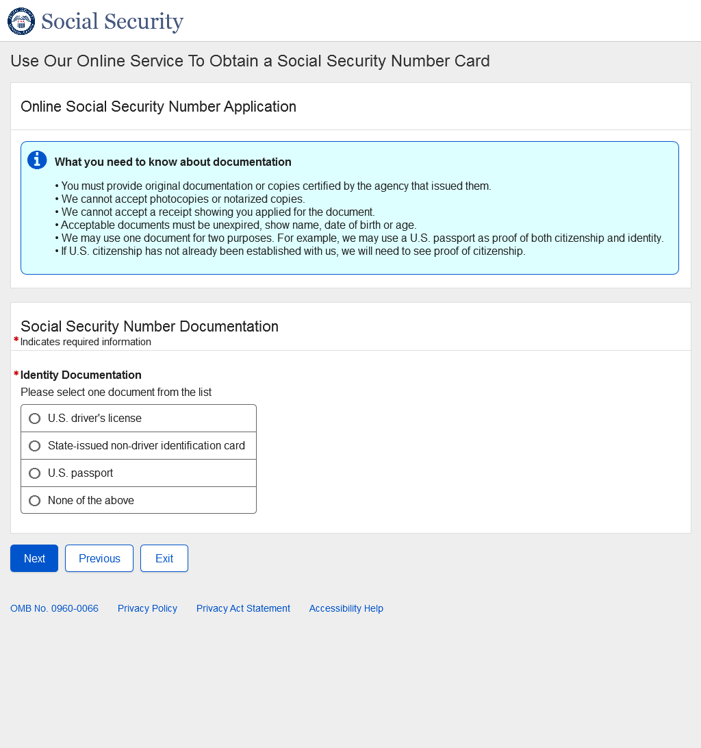 Application for a Social Security Card