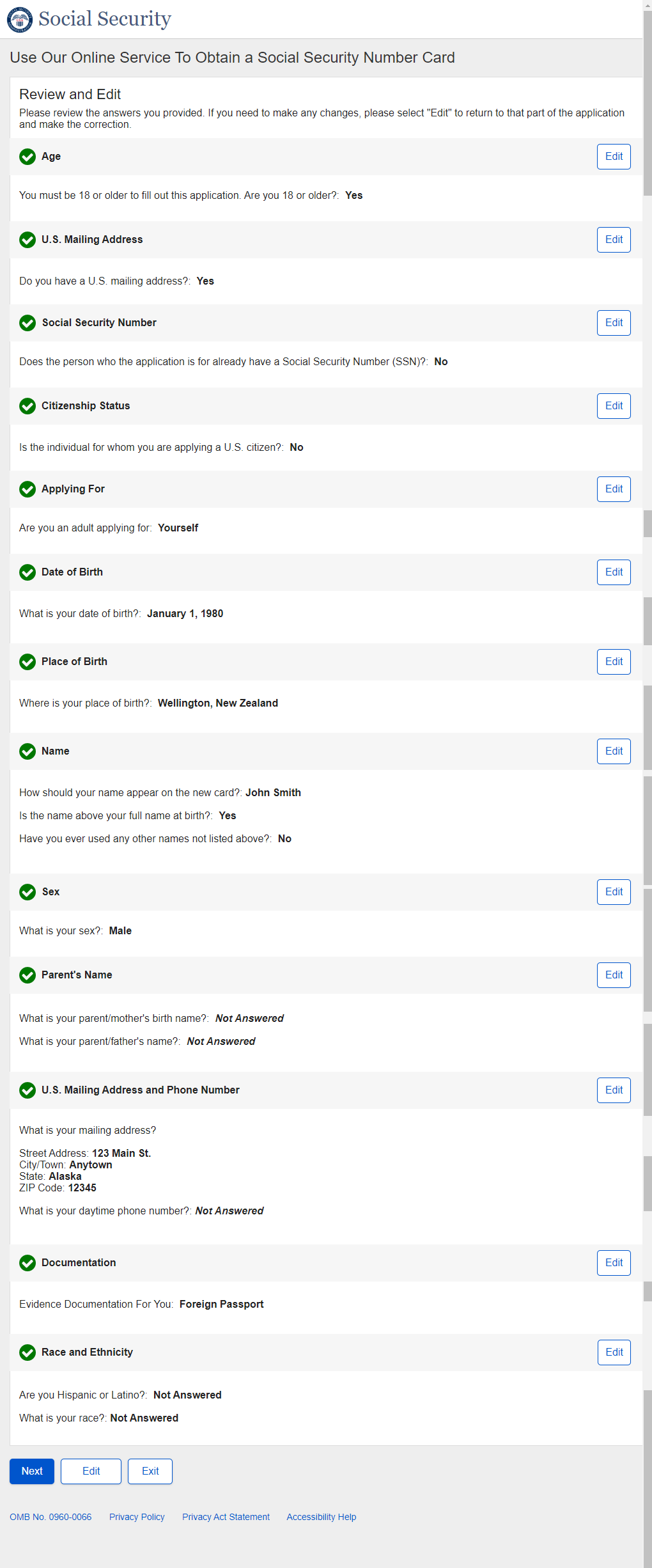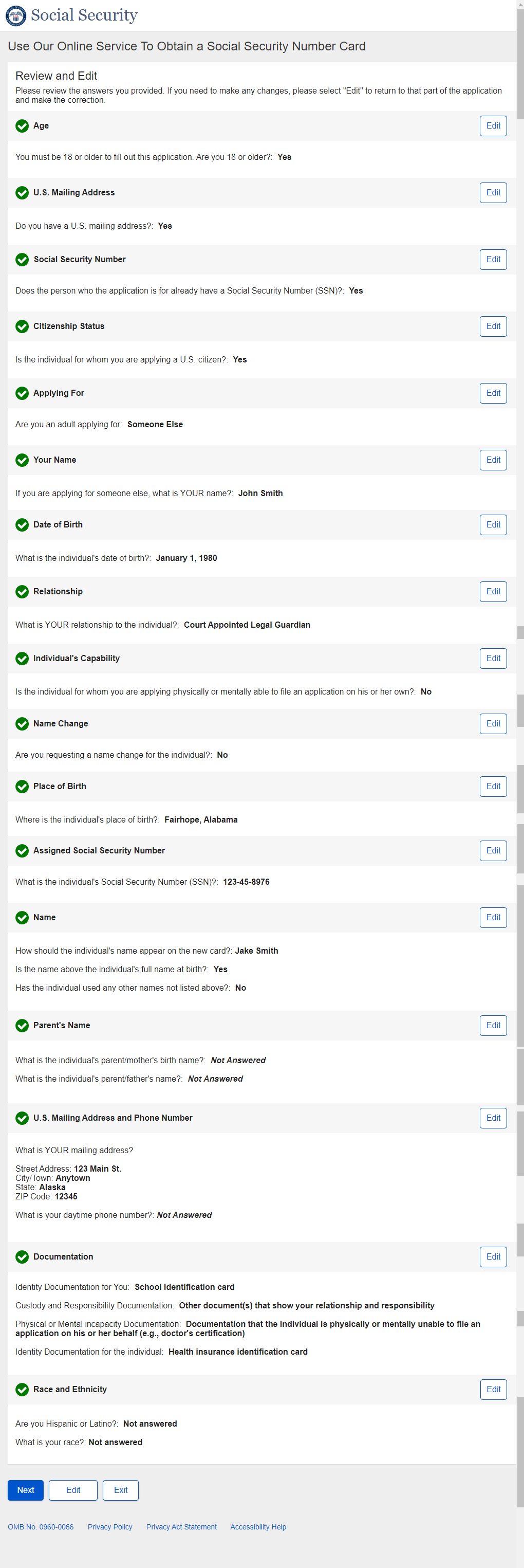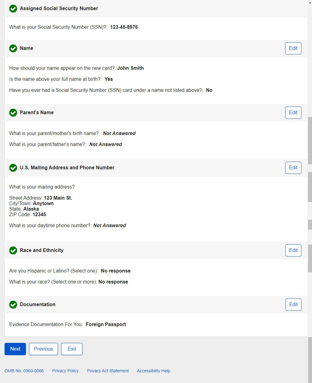 1. Non-U.S. Replacement Someone Else Adult - Individual's SSN
