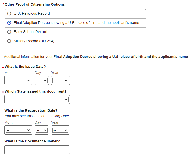 61. U.S. Original Someone Else Child – Proof of Citizenship for Child 116