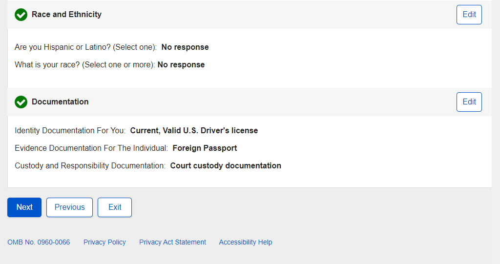 Non-U.S. Replacement Someone Else Child - Review and Edit - Continued