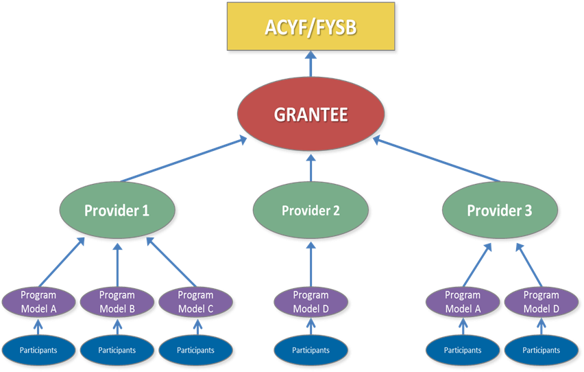 SRAE program structure refers to how grant funds are being used; the program models selected; their coverage of the required A–F topics; and the ways in which grant recipients and subrecipients support program implementation; and challenges experienced in implementing the programs. This information will continue to be collected from the grant recipients (Instrument 3) and their subrecipient program providers (Instrument 4). Subrecipients submit their data on these topics to grant recipients, who then compile this information and submit it to ACF once a year (Instrument 3).