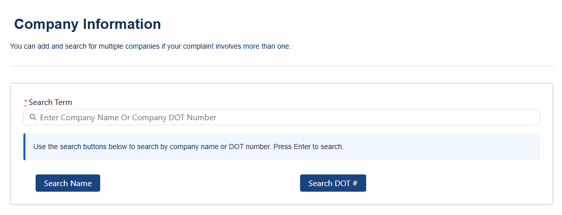 System functionality allows filer to search the FMCSA database to select the correct USDOT Number and/or Legal Name |